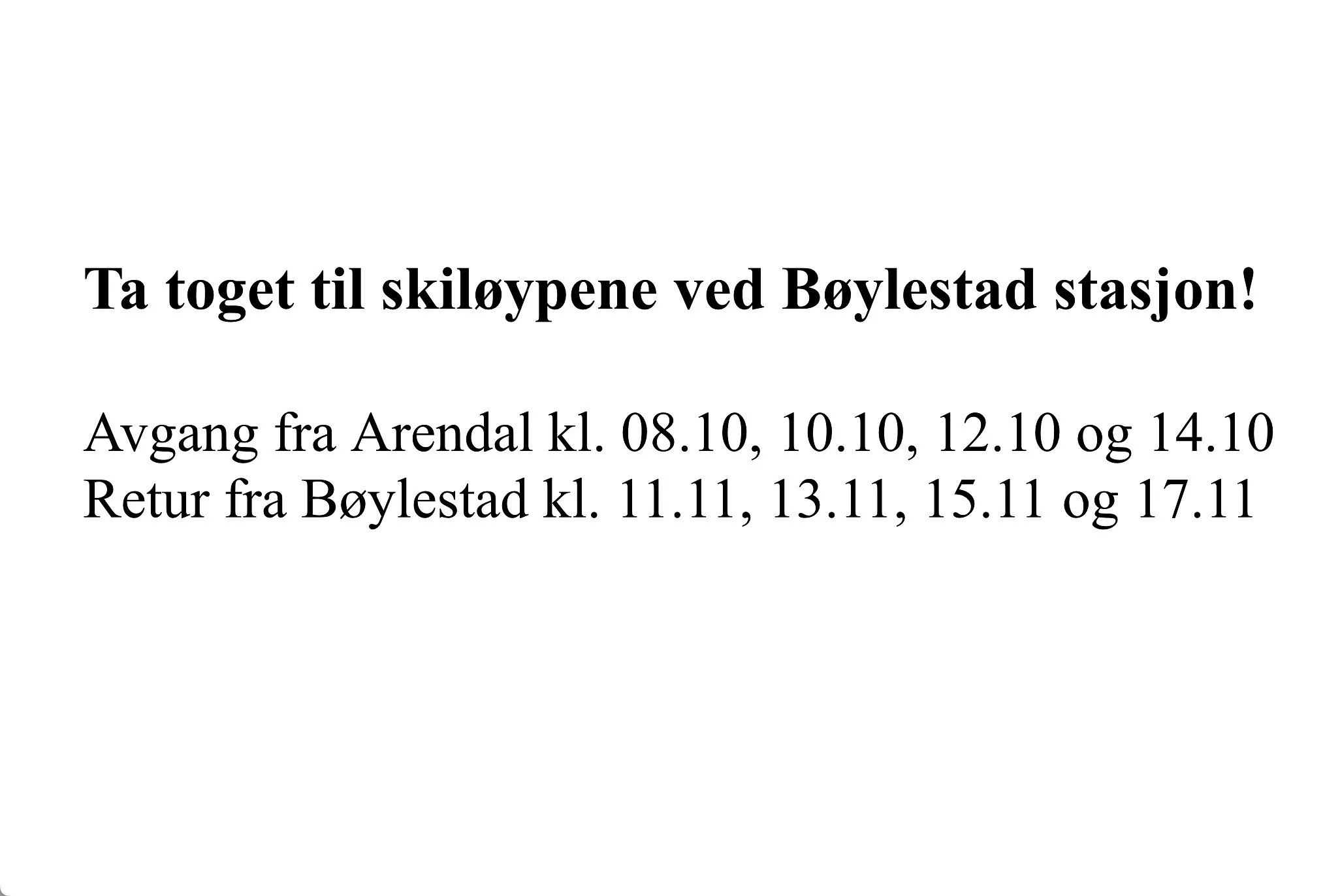 Retur fra Bøylestad: 11.11, 13.11, 15.11, 17.11.